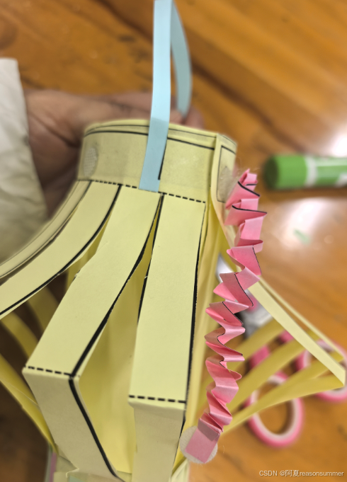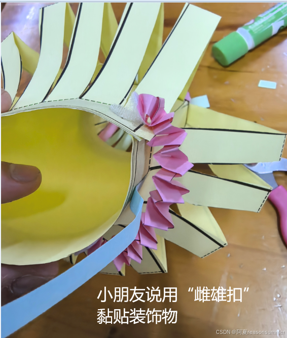 线条多,孩子们做出来的不少灯笼,外圈的一根根线也不是完全”圆圈状“,而是几根一簇并排的样式。