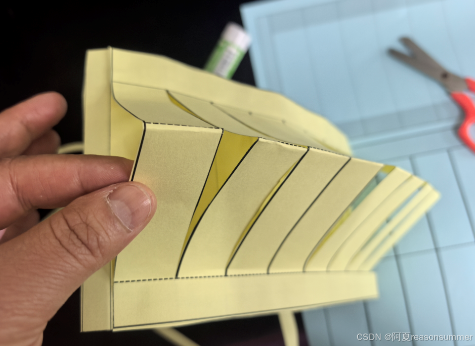 2、剪“钢琴键黑线时,不少线条并没有剪到底,需要2-3刀才能到底,有些孩子说纸张遮挡继续剪的路,所以他们看不见,就没剪——裁剪线条长度短一点,剪一刀就可以的那种。3-5CM,就是非常小的灯笼呢