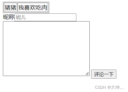 昵称<input type="text" placeholder="妮儿" id="text"><br>