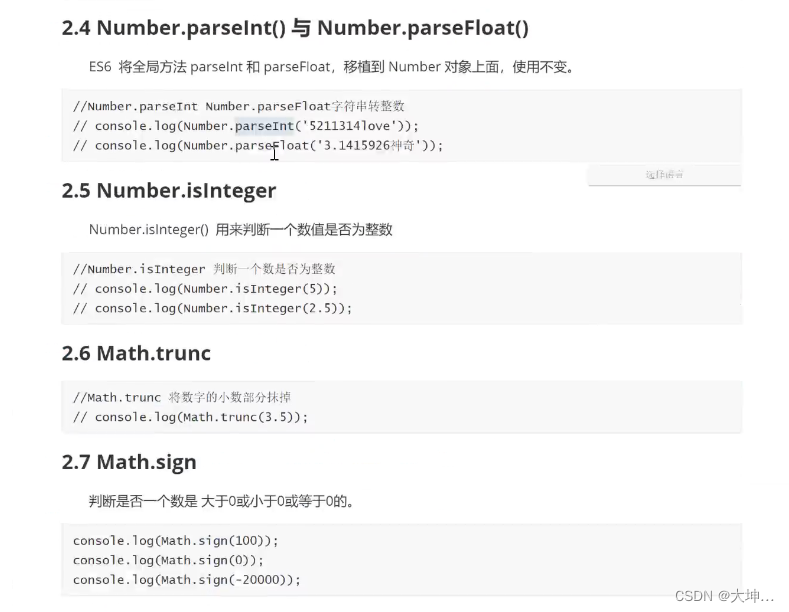 console.log(Number.parseFloat('3.1415926神奇')) // 3.1415926 可以输出小数