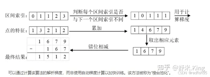 为了提高效率,LSS采用了“累计求和”的方法来实现求和(CumSum),累计求和的具体实现过程如下所示: