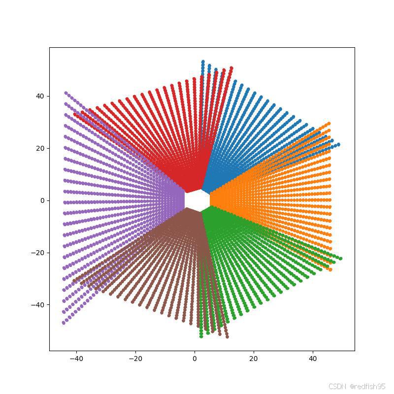 在上述topk采样过程中,如果设置self.num_points为10,那么就代表着在一个BEV格子中取10个点,得到的rank的维度为(10*128*128),接下来,我们将rank中坐标点解码出来,adjust_coords函数可以不予理会,没有起到作用。feat_coords的坐标是将6个相机的图像沿着H的方向进行拼接,方便后续采样的操作,如下面左图所示。而depth_coords的坐标,X_Y是将图像上的坐标XY拉直,idx_D则是沿着深度方向上拼接6个相机的深度坐标。最终得到在图像上的采样点坐标和在深度上的采样点坐标。