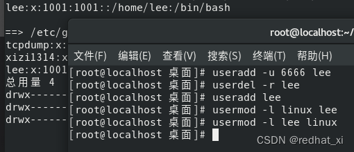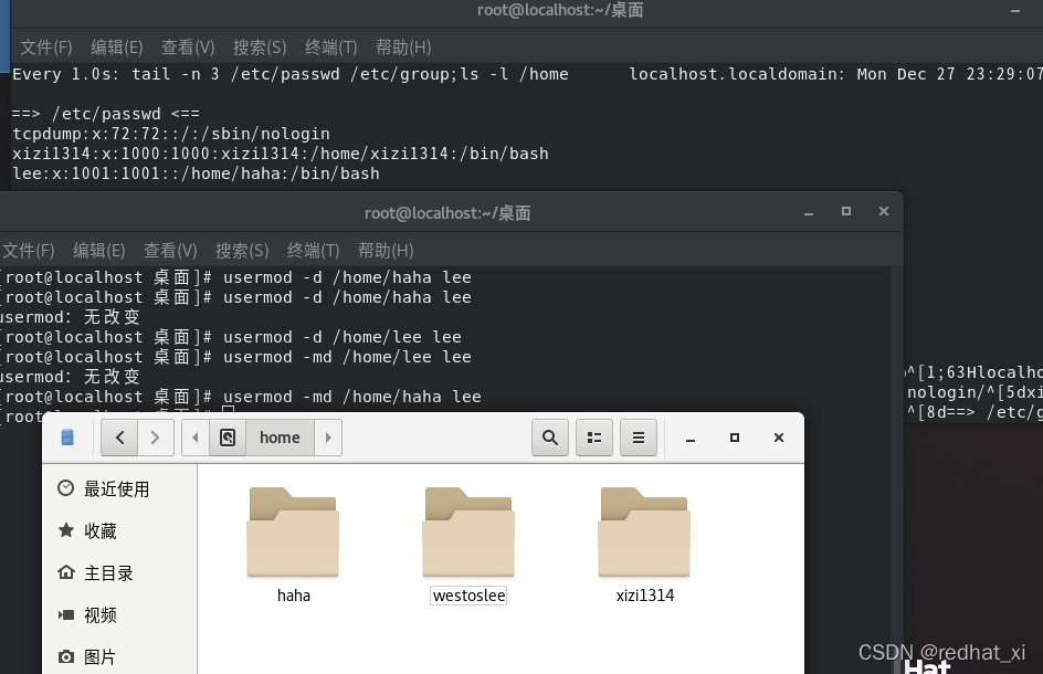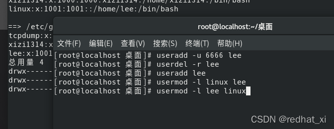 6. usermod -d 指定用户家目录的指向,实际上并没有改变家目录名称