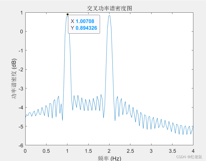 [Pxy, F] = cpsd(x, y, [], [], [], 1/(t(2)-t(1))); % 使用正确的采样频率