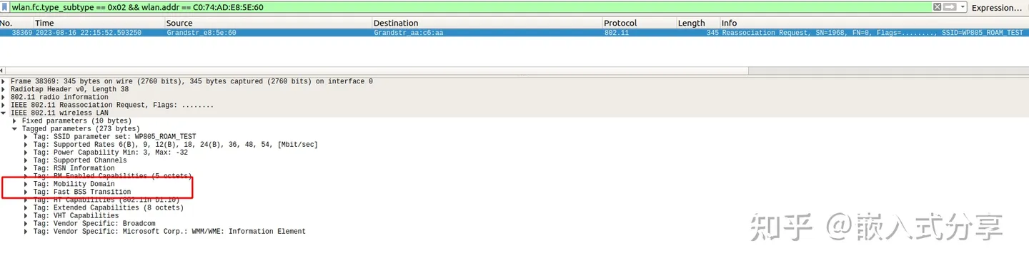 1、设备是否支持:看设备是否发出 FT Authentication Request (wlan.fc.type_subtype == 0x0b)