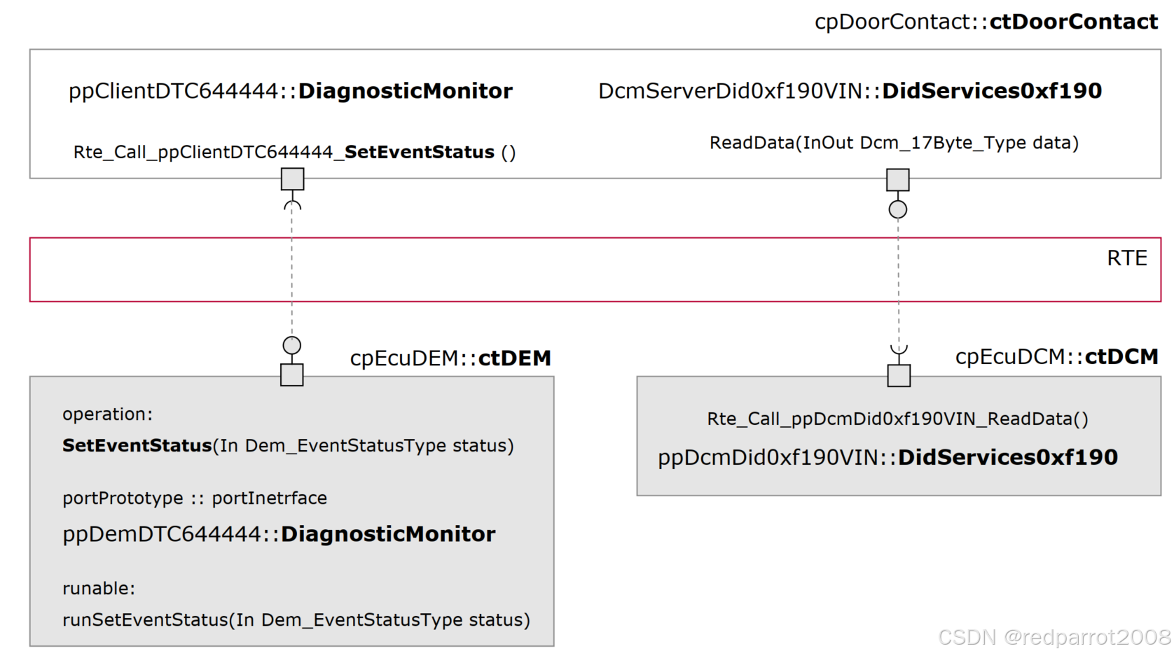 特征:就是标准接口和AutoSAR接口的特征它都有一部分。首先是和AutoSAR接口一样,提供的是C/S、S/R接口;然后又和标准接口一样,函数名是不可变的。说白了就是官方规定好的C/S、S/R接口,咱们就当成是AutoSAR接口就行了,函数名字什么不用管它。