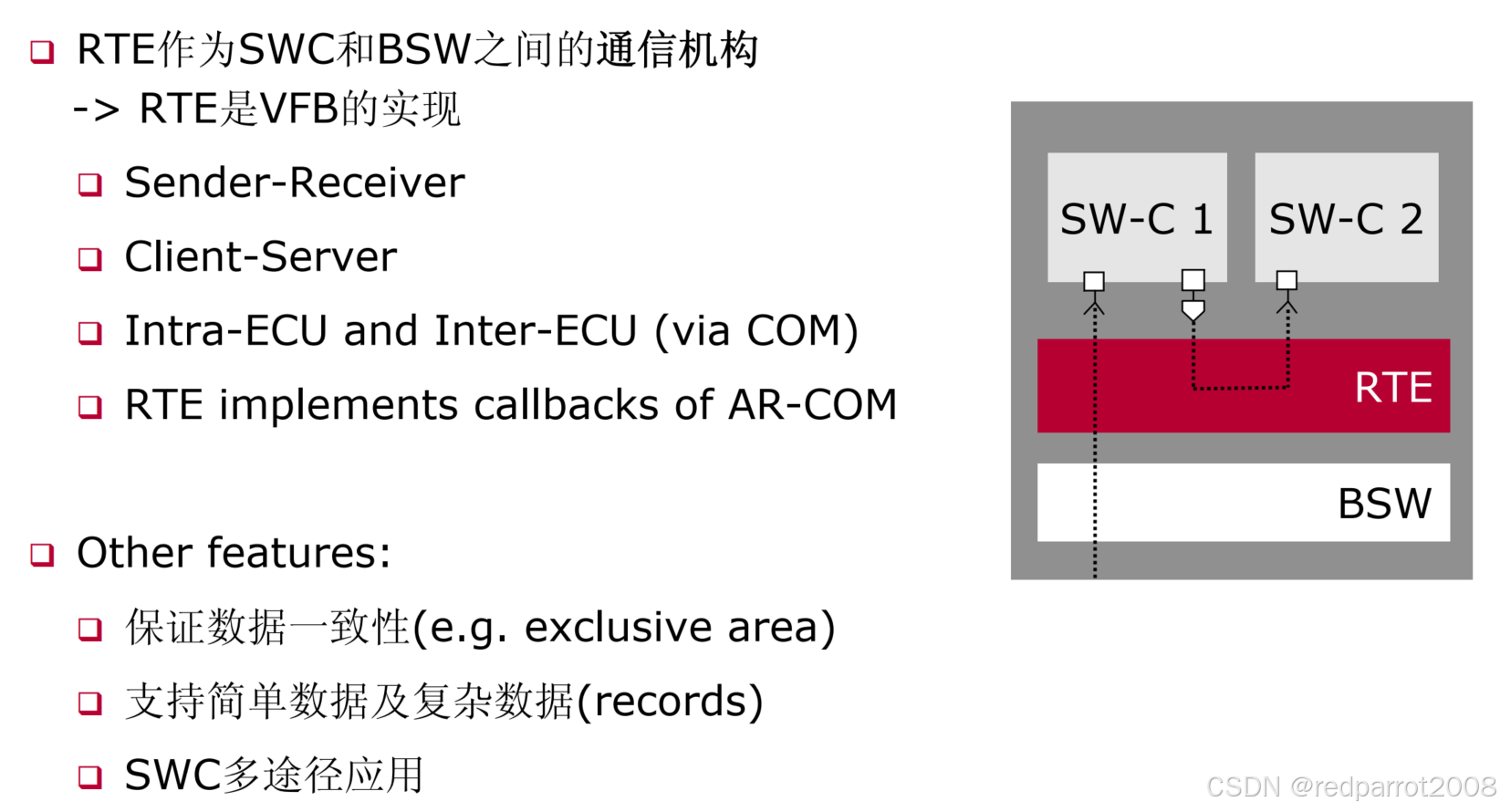 4.RTE仅仅处理了SWC之间的通信,包括ECU内部和ECU之间。