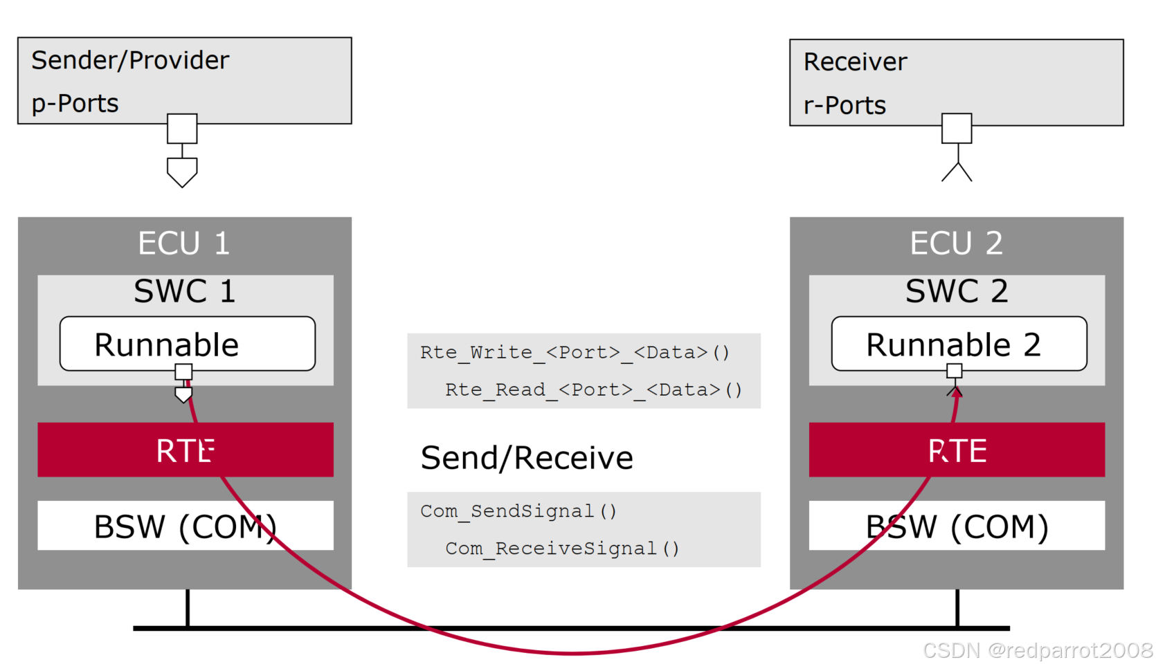这样的函数后,会需要走runnable(ECU1)->RTE(ECU1)->BSW(ECU1)->外部总线->BSW(ECU2)->RTE(ECU2)->runnable(ECU2),这里也列出了用于COM传输的两个函数名: