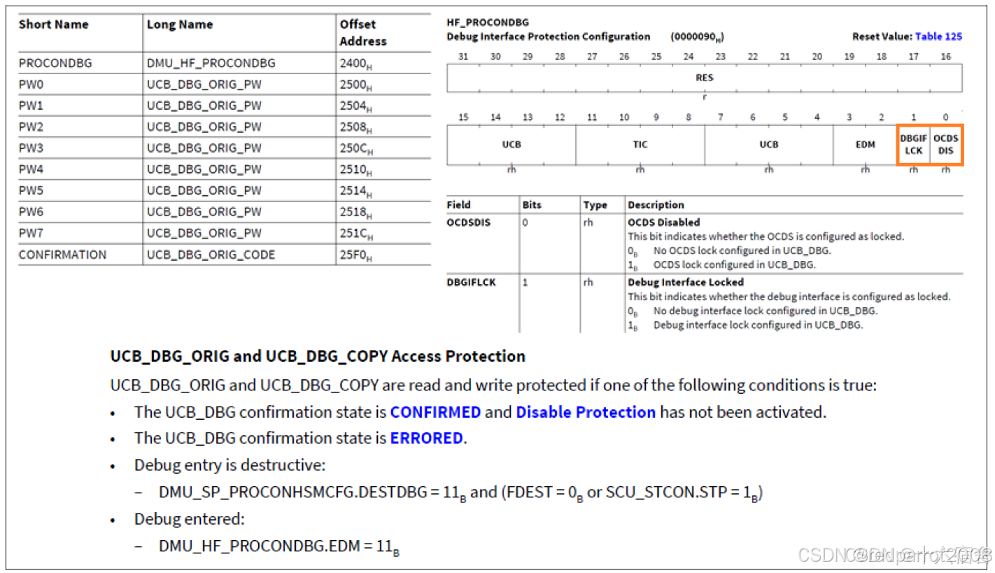 2. PROCONDBG中的Bit 0(OCDSDIS)和Bit 1(DBGIFLCK)与安全调试口有关。