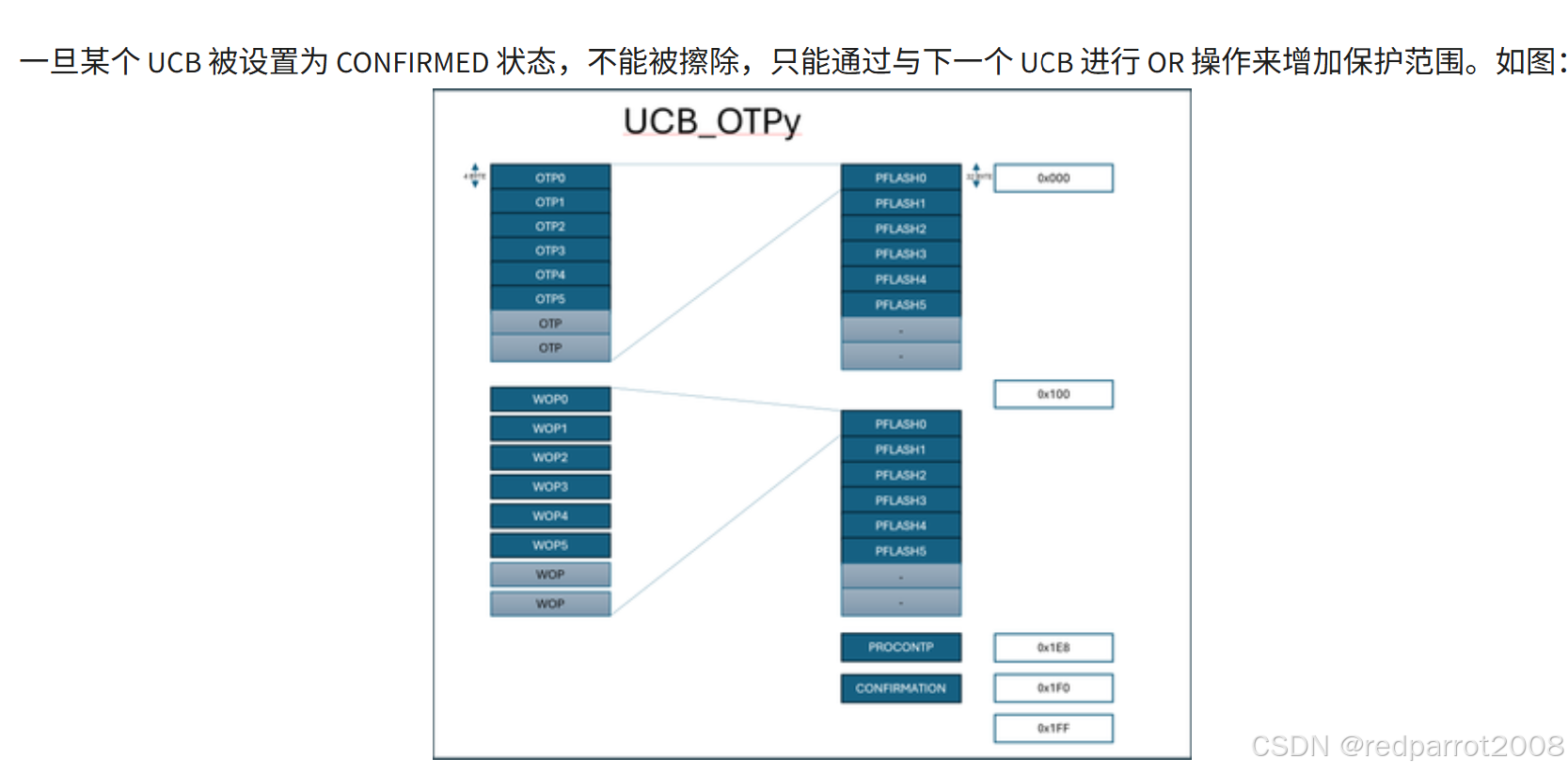 每个 UCB 大小为 512 字节,包含 6 组 OTP(一次性可编程)保护。