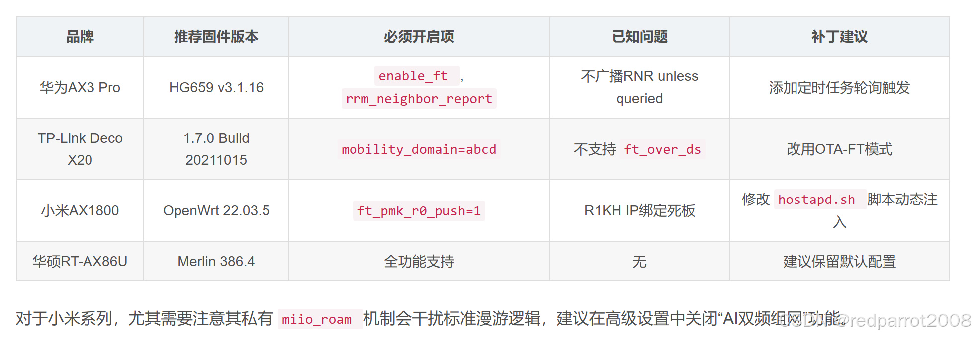 不同厂商对开源hostapd的修改程度不一,以下是常见品牌的适配建议汇总: