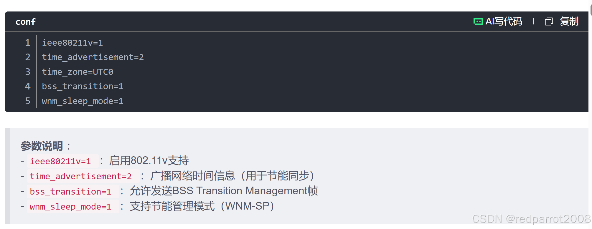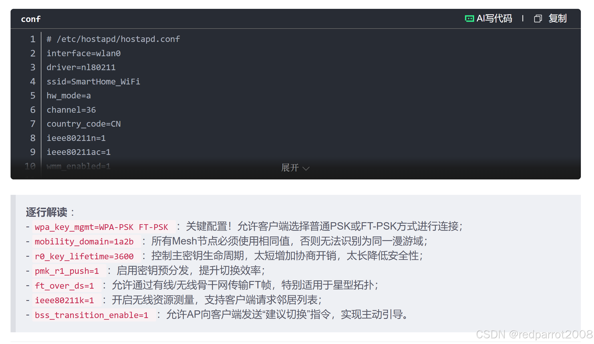 只要在配置文件中启用 dot11_neighbor_report=1 ,并在 hostapd.conf 中设置 ieee80211k=1 ,即可实现完整的802.11k链路闭环。