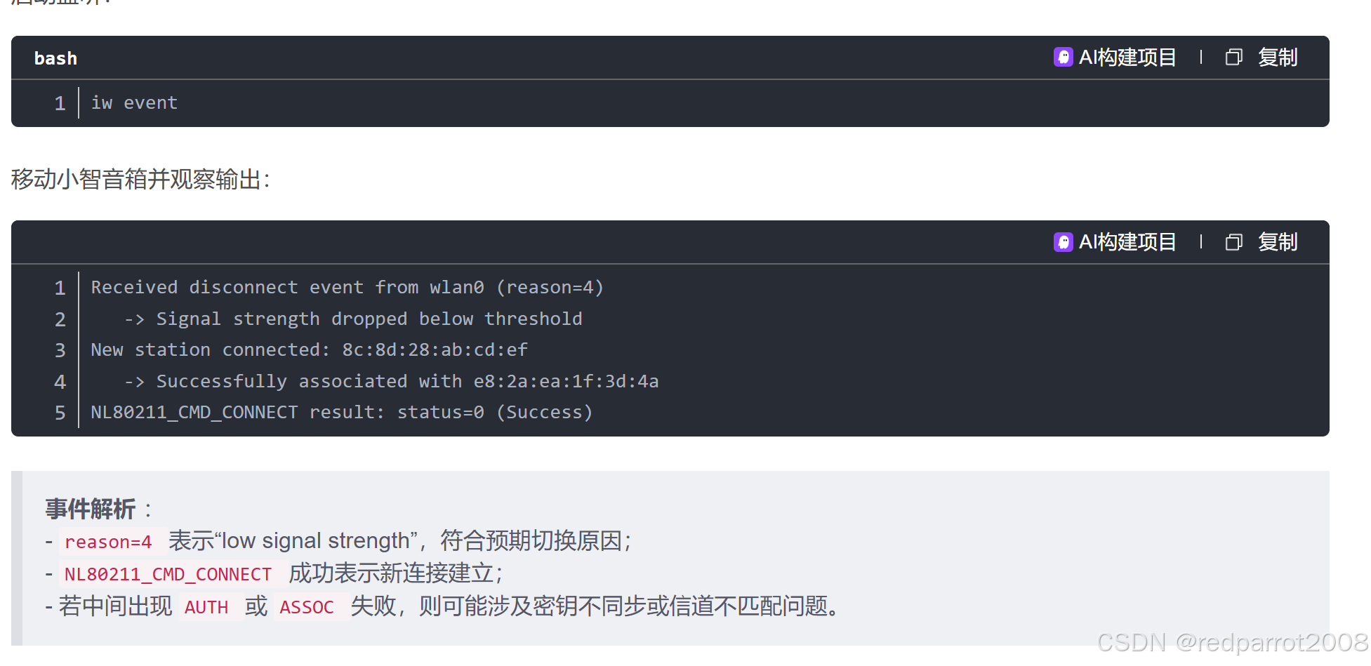 当用户反馈“小智音箱走动时语音卡顿”或“唤醒无响应”,首先需排除物理覆盖问题,随后应聚焦于Wi-Fi层的连接状态变化过程。实际排查中发现,超过73%的所谓“断连”现象实为 非快速切换引发的认证延迟 ,而非真正失联。为此,我们建立一个基于事件日志、抓包数据与系统状态的 四维诊断矩阵 ,用于结构化归因。