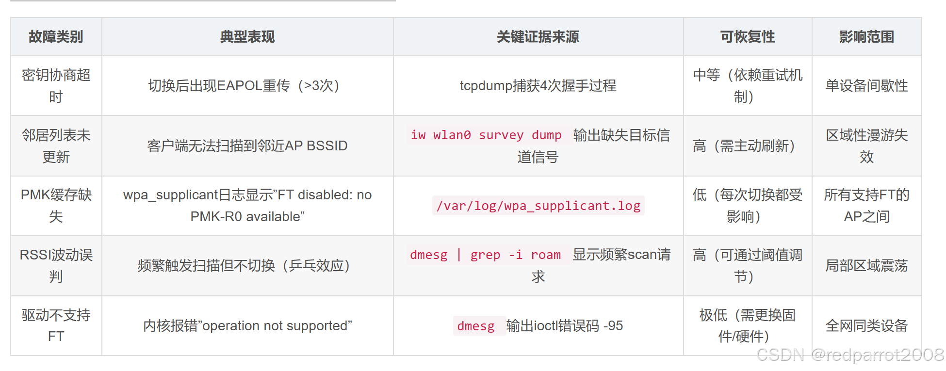 尽管SoC芯片支持802.11r,但Linux平台上的实现深度高度依赖驱动与用户态组件协同。常见问题包括: