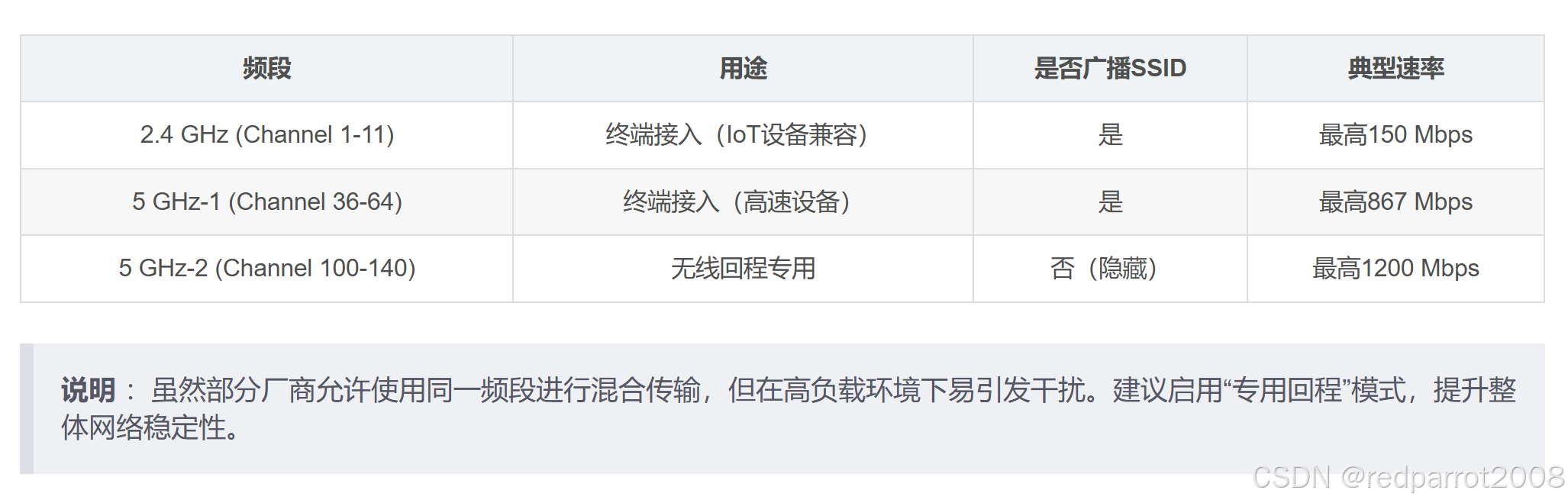 以某品牌三频Mesh节点为例,其频段分配如下表所示: