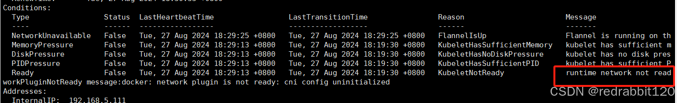 runtime network not ready: NetworkReady=false reason:NetworkPluginNotReady message:docker: network plugin is not ready: cni config uninitialized