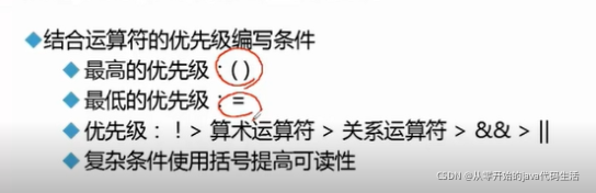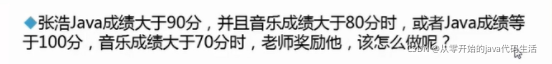 int fen =85; int fen2 =65; if(fen>90 && fen2>80 || fen==100 && fen2>70) { System.out.println("考的不错获得奖励"); }