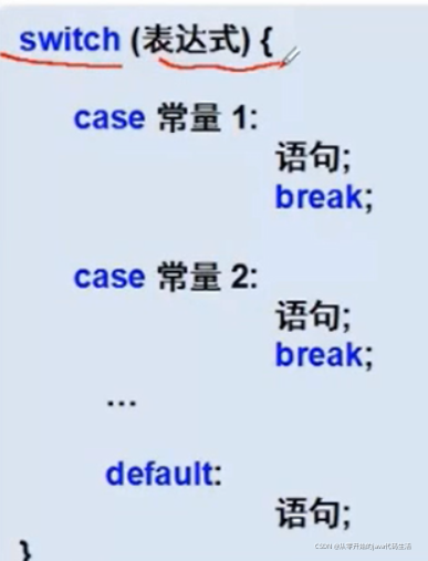 case代表各种情况,执行语句break跳出结束