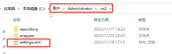 (10)然后将配置好的settings.xml文件即D:\ProgrameFile\apache-maven-3.8.2\conf\settings.xml 拷贝到 C:\Users\Administrator.m2\ 目录下,即如下