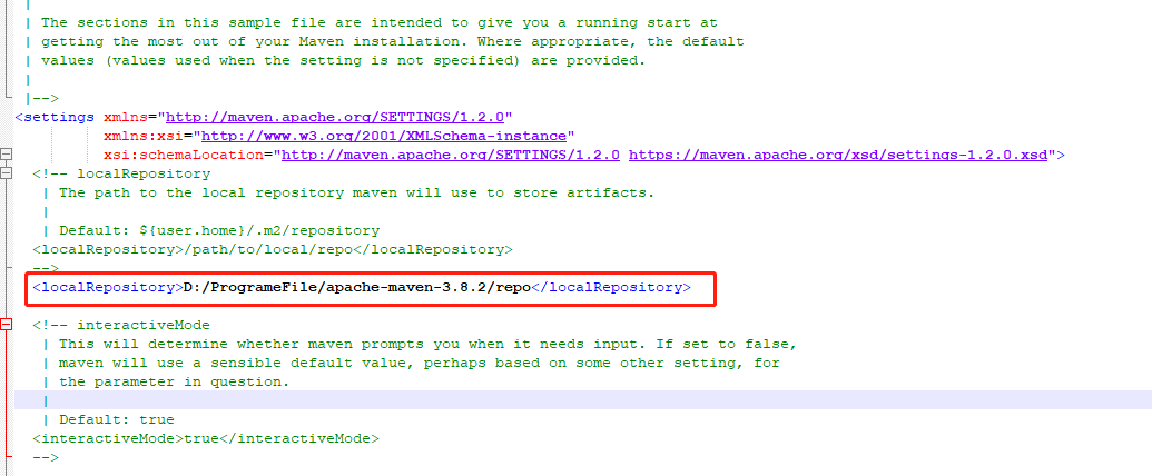 <localRepository>D:/ProgrameFile/apache-maven-3.8.2/repo</localRepository>