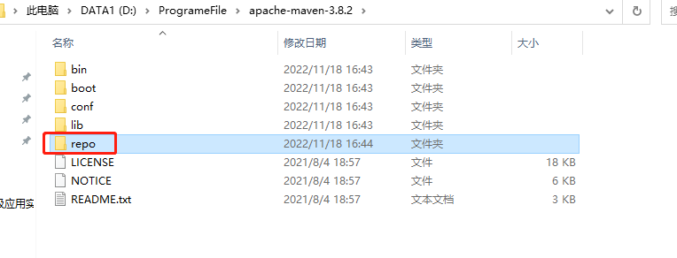 (7)在安装目录下创建一个repo目录,用于存放缓存的jar包