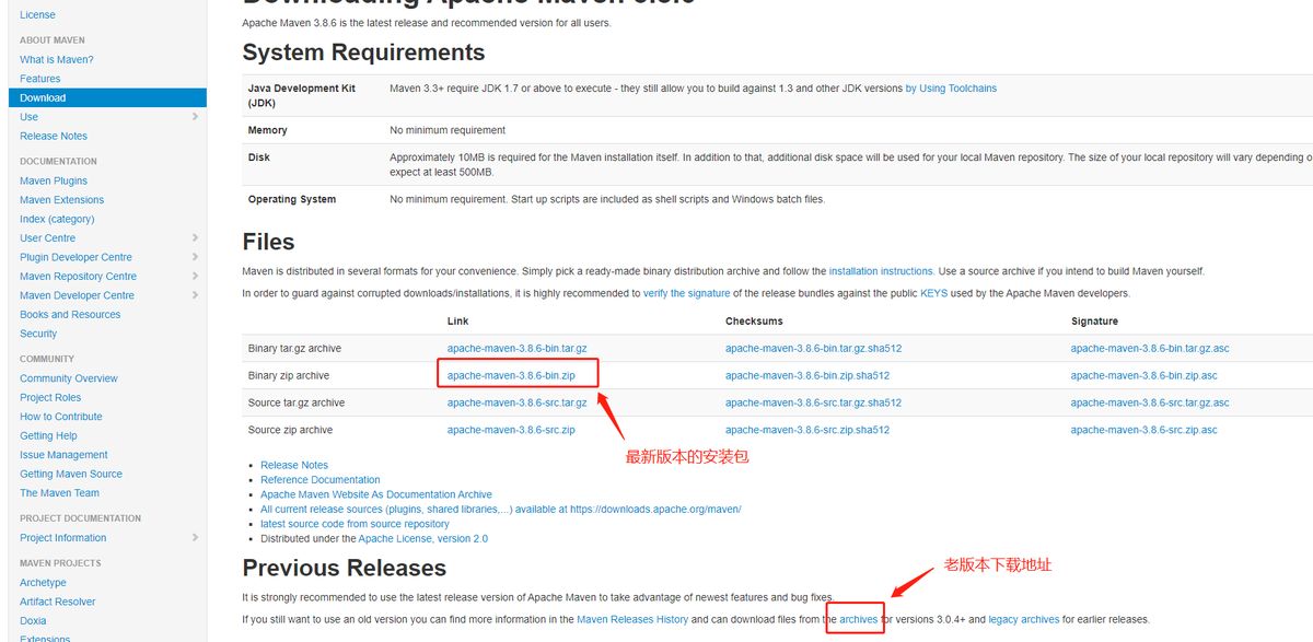 (2)从 maven下载地址 ,下载maven,如下,可以下载最新版本,也可以下载老版本