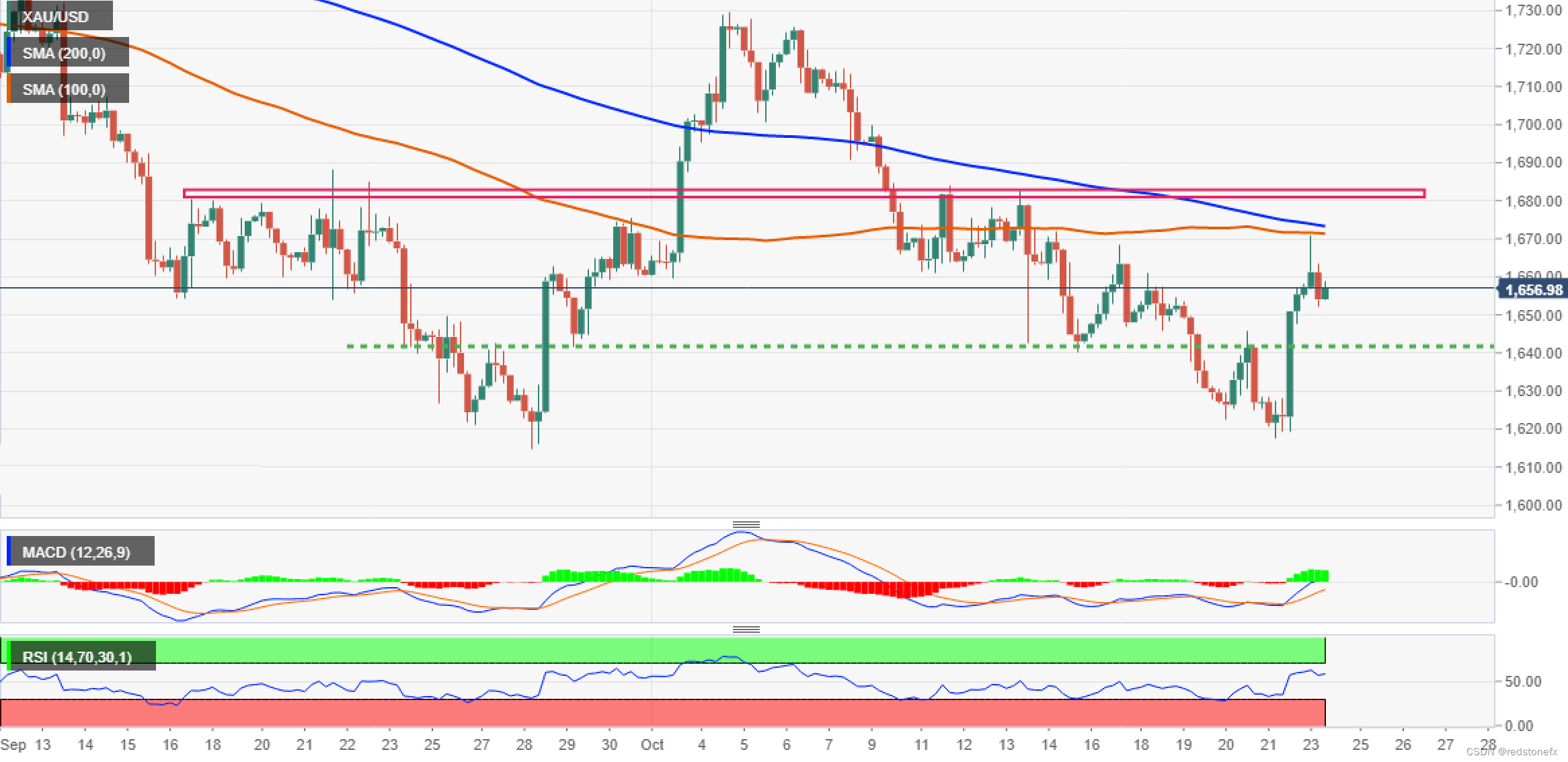 技术面看,亚盘上涨后续强势,都可能在1670美元附近区域遭遇强劲阻力。一些后续买盘应该重返1700美元的整数关口。这种积极的势头可能会进一步扩大,并推动价格再次测试1730美元附近的月度峰值。
