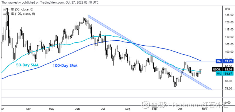 3、WTI 在突破 50 天简单移动平均线后瞄准 10 月高点;