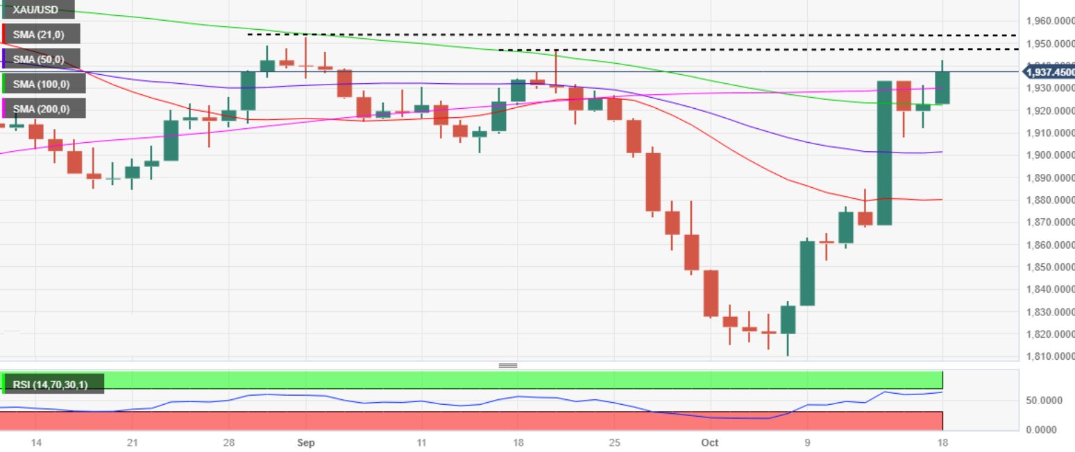 黄金价格在美元疲软和美债收益率下降的背景下接近1950美元,交易者关注美联储官员讲话。技术分析显示,金价有上行潜力,关键阻力位于1947美元,若跌破200日均线可能回撤至1912美元。