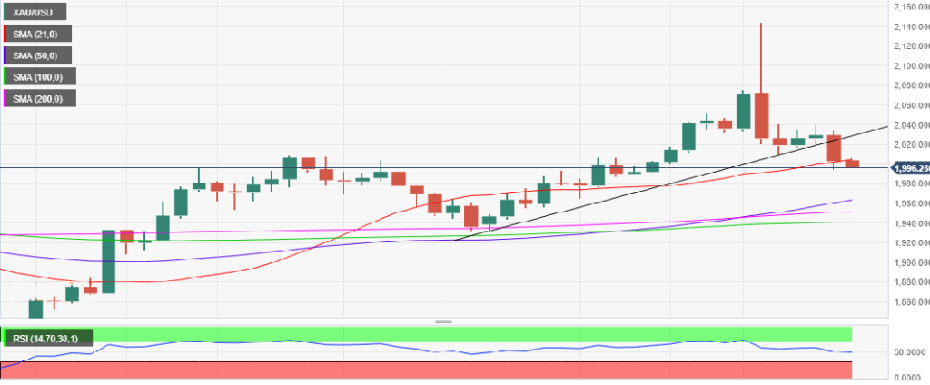 黄金价格正在测试上周五设定的1995美元的10天低点,似乎在本周初变得脆弱,因为各大中央银行的一周启动。在谨慎的市场环境和稳定的美债收益率中,美元正在紧守其复苏增长。