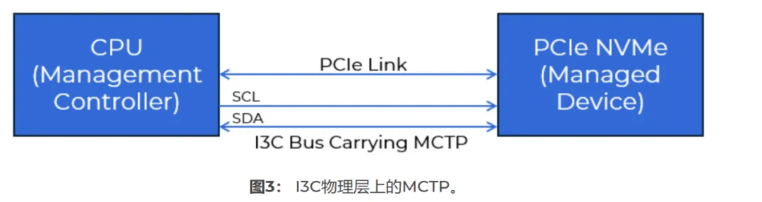 现在,如果您曾经使用过PCIE,您会知道这是非常高的性能,高复杂性总线,因此最好将其用于最大速度执行真实的任务模式传输(例如从磁盘驱动器中读取大型文件),而不是将其用于系统管理。这就是为什么在许多实际实现中,MCTP协议通常会骑在其他更简单的物理层上,例如SMBUS。现在,随着最近的I3C绑定,MCTP协议愉快地骑在I3C物理层上!见图3。