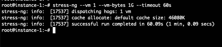 # stress-ng --vm 1 --vm-bytes 1G --timeout 60s