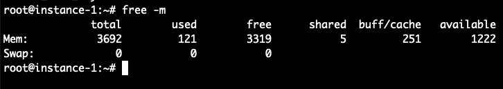 In order to test that the setting of min_free_kbytes is working as designed, I have created a linux virtual instance with only 3.75 GB of RAM. Use the free command below to analyze the system:
