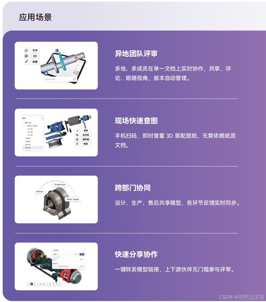 作为一款在线2D/3D查看器,大腾智能3D一览通提供DWG、FBX、OBJ等50多种格式文件的查看,还支持在线评审、测量、爆炸等,多端同步功能支持手机、电脑跨设备看图,即使外出也能随时看图,极大提升效率。