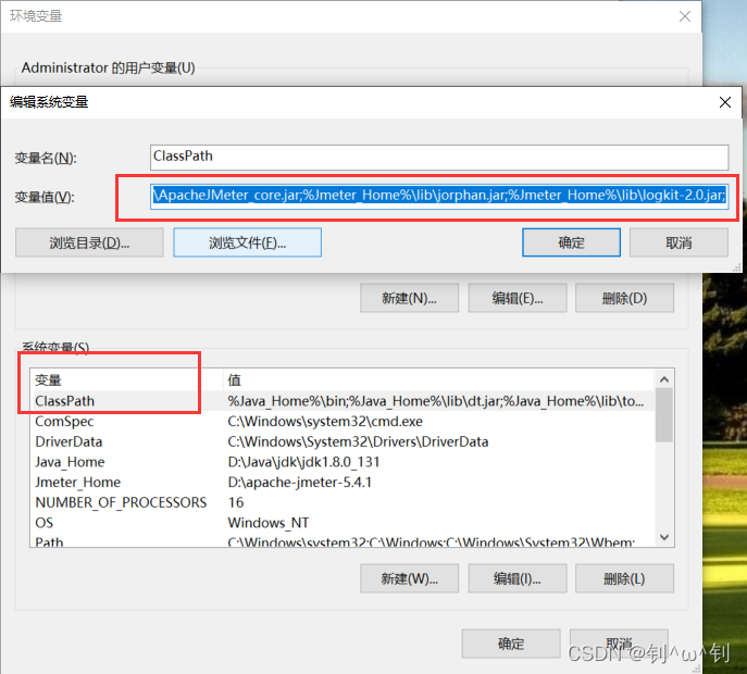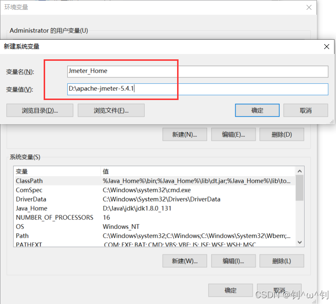 变量名:Jmeter_Home,变量值:所存放的Jmeter路径