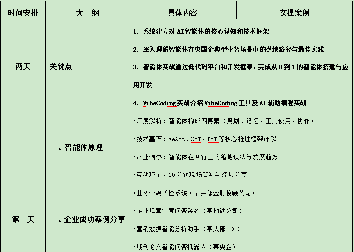 想学习的可以参考以下2025年12月底即将在北京举行的“智能体搭建与开发应用技术研修班”学习课纲: