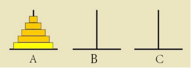 当A塔上有n个盘子是,先将A塔上编号1至n-1的盘子(共n-1个)移动到B塔上(借助C塔),然后将A塔上最大的n号盘子移动到C塔上,最后将B塔上的n-1个盘子借助A塔移动到C塔上。