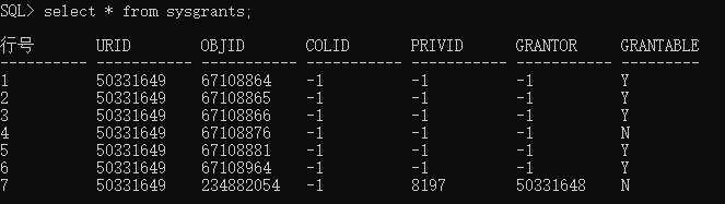 select * from sysgrants;