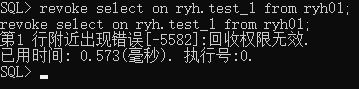 --回收ryh用户下test_1表查询权限