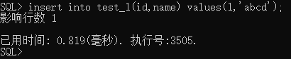 - 执行:insert into test_1(id,name) values(1,'abcd');
