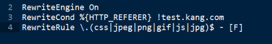 即如果其它网站包含了以test.kang.com/........css,jpeg,png.....等结尾的链,就禁止访问。 -[F] forbidden禁止。