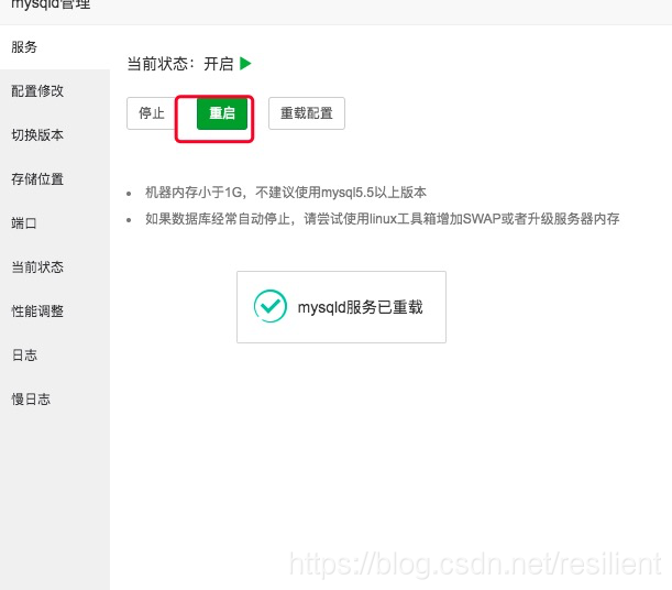 重启mysql