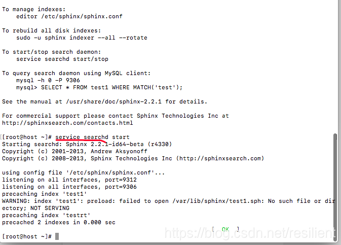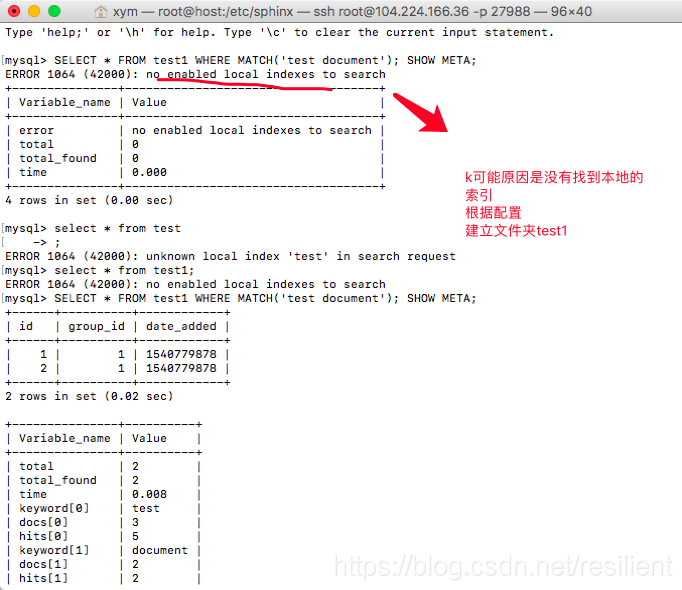 在结果上面可以看到,在test1的指数,Sphinx发现: