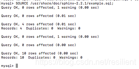 导入数据库 SOURCE /usr/share/doc/sphinx-2.2.1/example.sql;