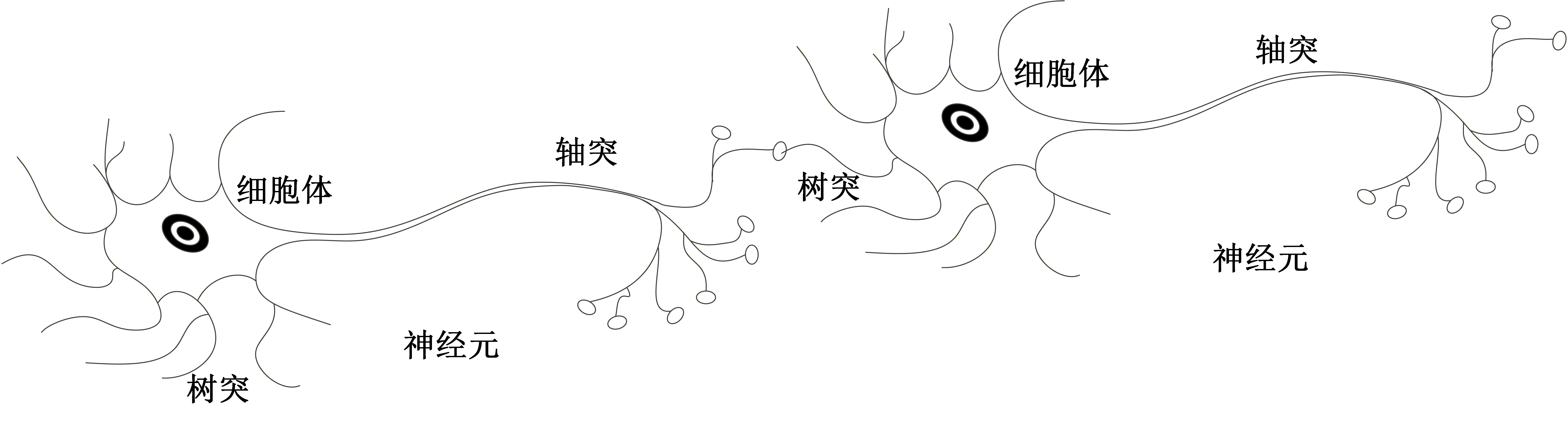 人工神经元(简称神经元)是神经网络的基本组成单元,它是对生物神经元的模拟、抽象和简化。现代神经生物学的研究表明,生物神经元是由细胞体、树突和轴突组成的,如下图所示。通常一个神经元包含一个细胞体和一条轴突,但有一个至多个树突。