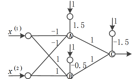 在本专栏第三篇文章中用来模拟异或运算的神经网络的结构如下: