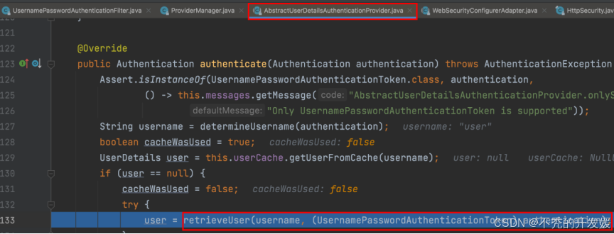 调用了 ProviderManager 实现类中 AbstractUserDetailsAuthenticationProvider类中方法