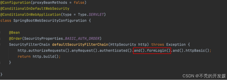查看 SpringBootWebSecurityConfiguration#defaultSecurityFilterChain 方法表单登录