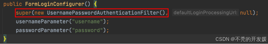 处理登录为 FormLoginConfigurer 类中 调用 UsernamePasswordAuthenticationFilter这个类实例