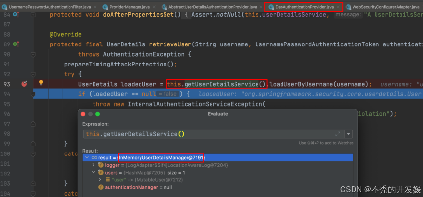 最终调用实现类 DaoAuthenticationProvider 类中方法比较